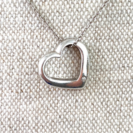 Open Heart 925 Silver Necklace with Real Diamond Detail Necklace