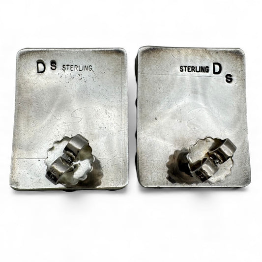 Dorothy Secatero Sterling 'Ds' Navajo Green Turquoise Cluster Pierced Earrings