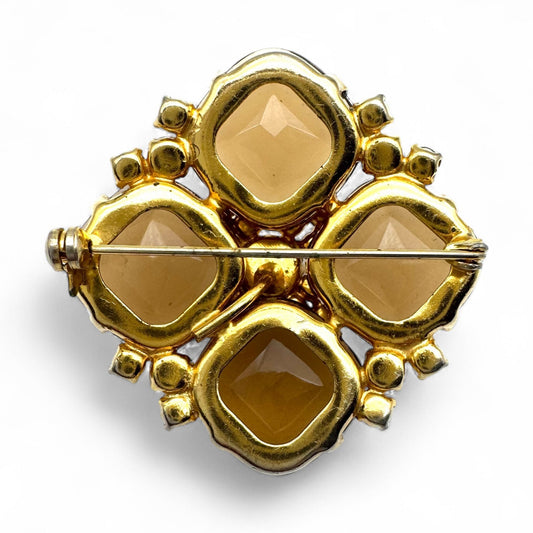 1950s Open Back Cushion-Shaped Topaz Glass Quatrefoil Brooch