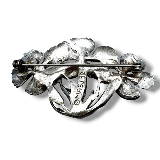 MASJ 1992 Silver Plated Pewter Floral Trio Brooch