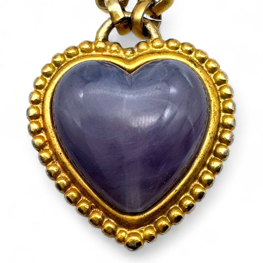Leslie Block Matte Gold Plated Heart-Shaped Lilac Art Glass Pendant Necklace with Glass and Faux Pearl Bead Accents