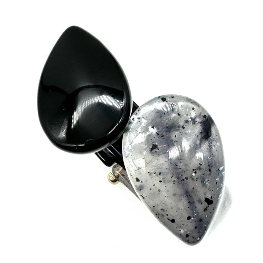 Angela Caputi Asymmetric Black and Clear Grey Flecked Clamper Resin Bangle