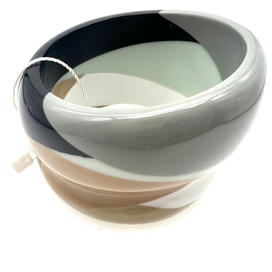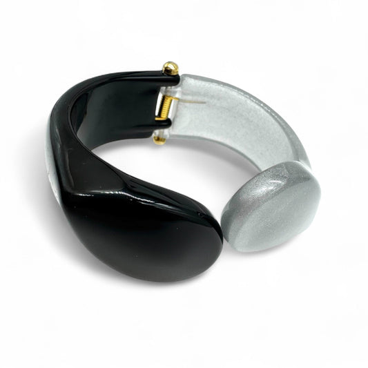 Angela Caputi Asymmetric Two-Tone Rich Black and Glistening Pale Silver Resin Clamper Bangle