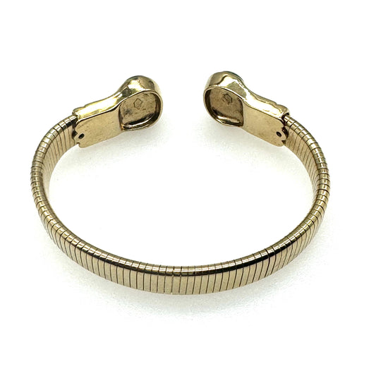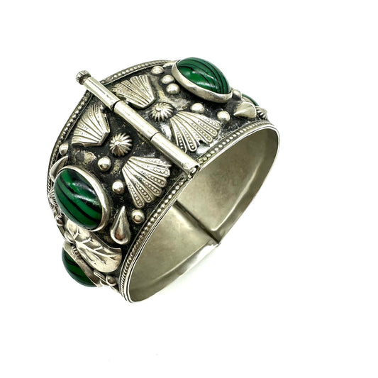 Vintage 1960's Faux Malachite Art Glass Cabochon Pinned Clasp Bangle