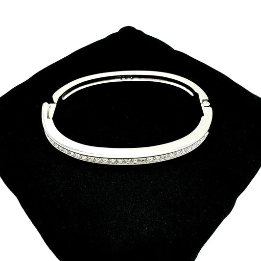 Swarovski (Swan Hallmark) Rhodium Plated Crystal Hinged Bangle