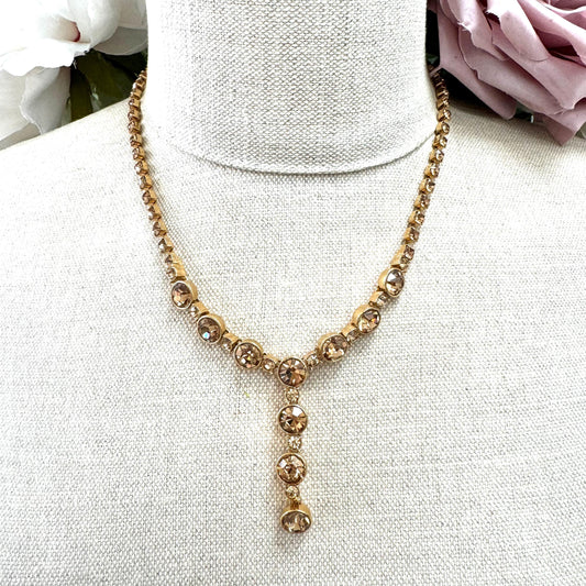 Monet Crystal Bezel Set Drop Y-Shaped Necklace and Matching Bracelet
