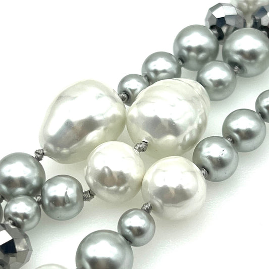 Jaeger Chunky Hand-Knotted Three Strand Faux Pearl and Faceted Glass Bead Bracelet