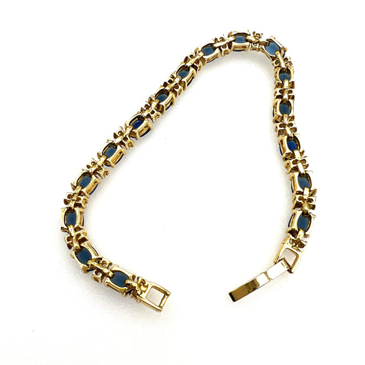 Vintage Royal Blue and Clear Crystal 18ct Gold Plated Chain Link Bracelet