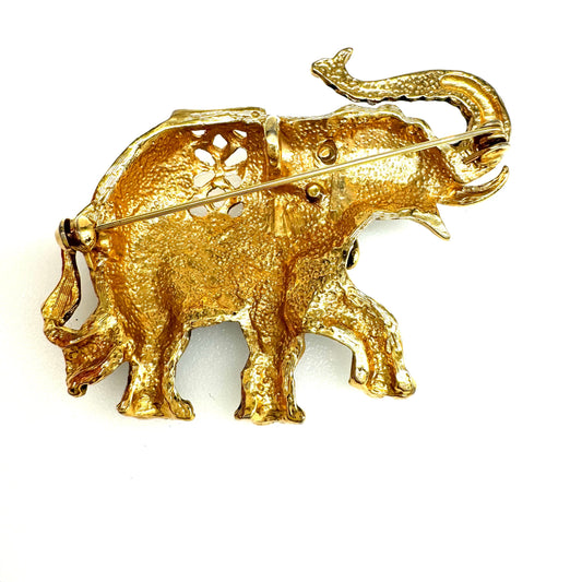 Black Enamel and Rhinestone Elephant Brooch/Pendant