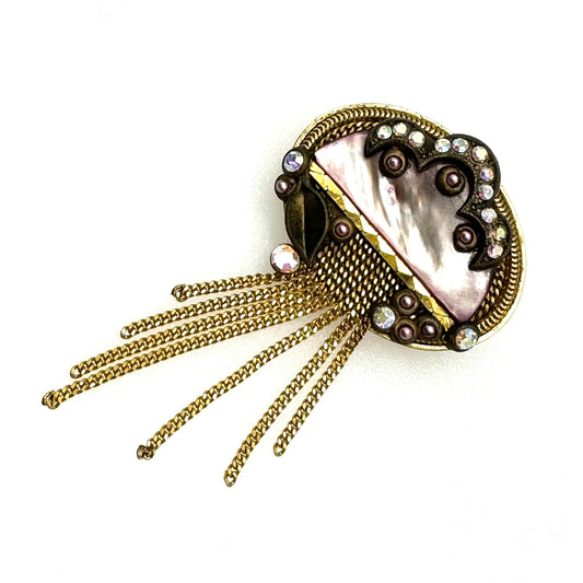 Marena (W.Germany) Hand Made Mother of Pearl and Aurora Borealis Crystal Waterfall Tassel Brooch