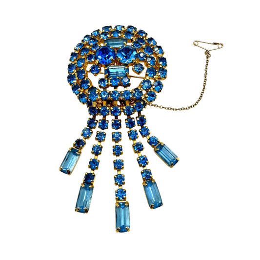 Juliana D&E Blue (Some AB) Rhinestone Brooch in a Japanned Dog Tooth Setting