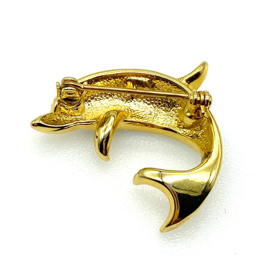 Unsigned Attwood and Sawyer 22ct Gold Plated Enamel and Swarovski Crystal Dolphin Brooch