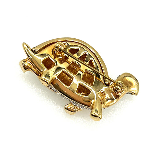 Signed Swarovski 18ct Gold Plated Crystal Turtle Brooch