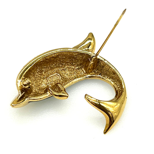 Large Attwood and Sawyer 22ct Gold Plated Dolphin Pave and Enamel Brooch