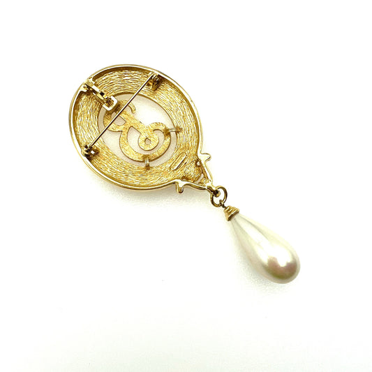 Burberrys of London Large Monogram Brooch/Pendant with Pearl Dropper
