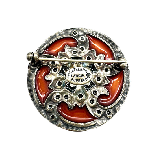 Catherine Popesco France Translucent Enamel and Crystal Brooch