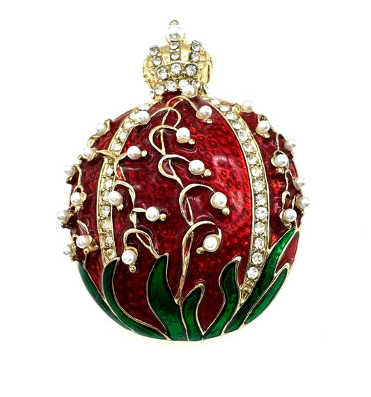 MMA CN Ciner Faberge Inspired Red Enamel Lily of The Valley Brooch