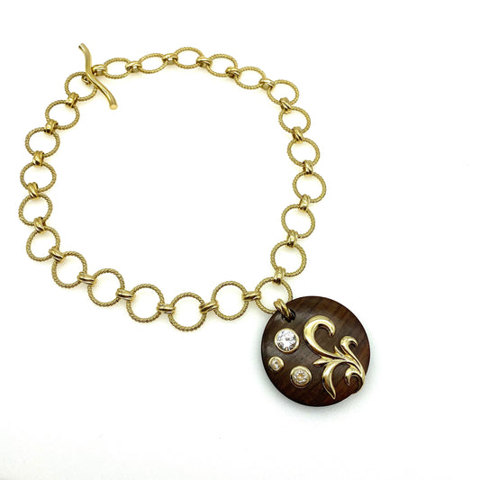 Dominique Aurientis Gold Plated Necklace with Round Wood Pendant