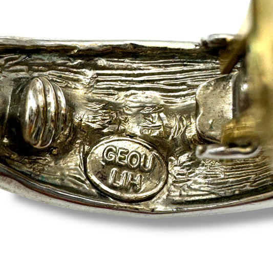 Geou Lih Black Enamel and Rhinestone Curved Clip On Earrings