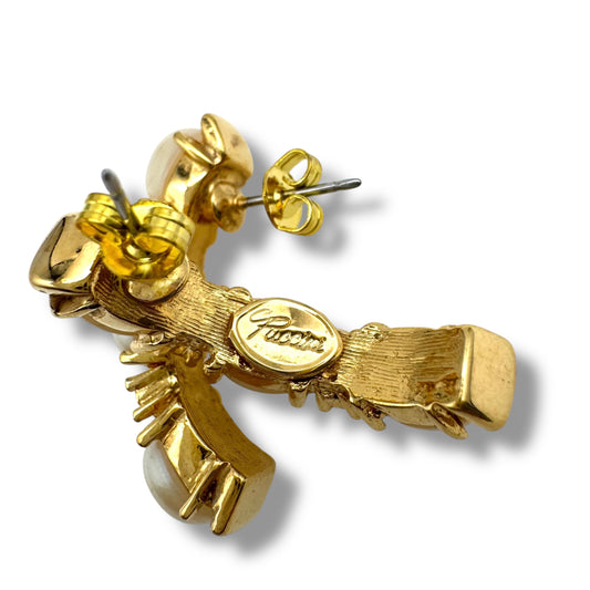 Givenchy New York Paris Double Faux Pearl Gold Plated Clip On Earrings