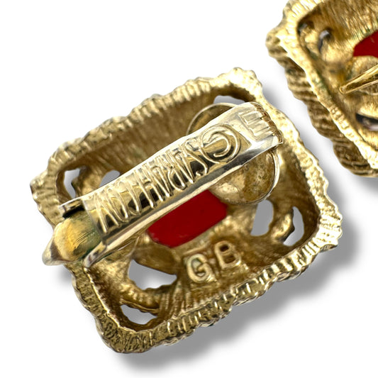 Sarah Coventry Red Glass Clip On Earrings