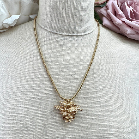 Grosse 1966 Germany Gold Plated Organic Freeform Pendant on Herringbone Box Chain Necklace