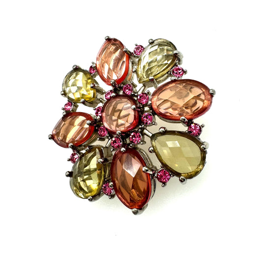 Joan Rivers Peach, Green and Pink Faceted Brooch