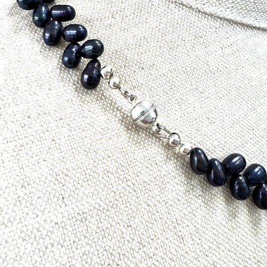 Vintage Peacock Freshwater Potato Pearl Necklace with Magnetic Clasp (Dyed)