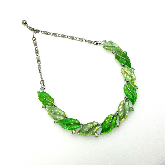 Lisner Lucite Leaf and Chrome Tone Necklace