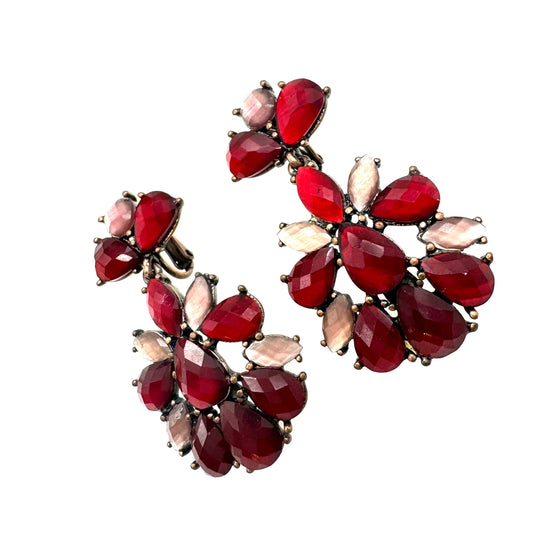 Liz Claiborne Red and Pink Dangle and Drop Clip On Earrings