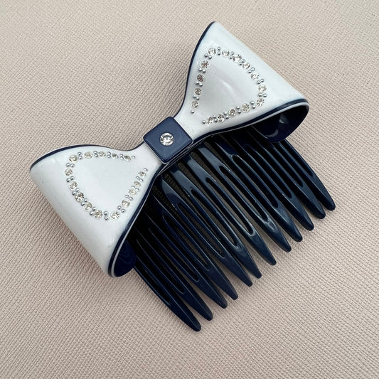 Mary Quant Navy and White Crystal Embellished Bow Hair Slide/Comb