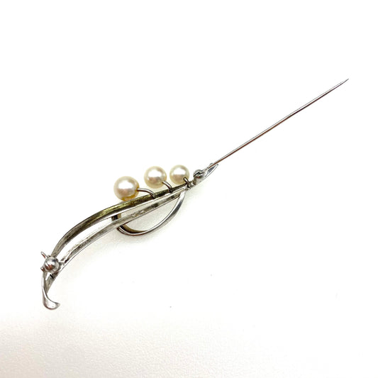Mikimoto Japanese Graduated Akoya Pearl Silver Brooch