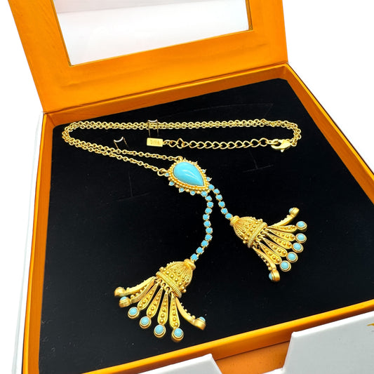 Victoria & Albert Gold Plated Faux Turquoise Tassel Necklace in Original Box (Future Collectibles)