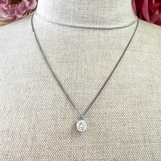 925 Cubic Zirconia Solitaire Pendant Necklace 46 cm