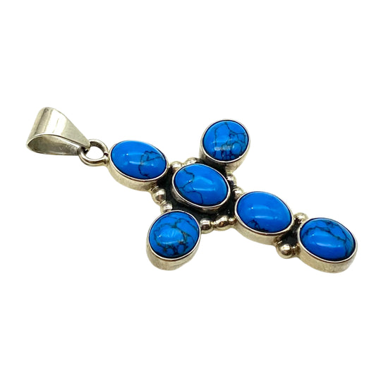 Large Mark Wasserman Samara Treated Turquoise 925 Silver Mexico Cross