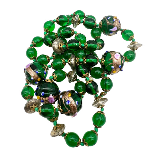 Green Venetian Glass Lampwork Hand Knotted Beaded Necklace