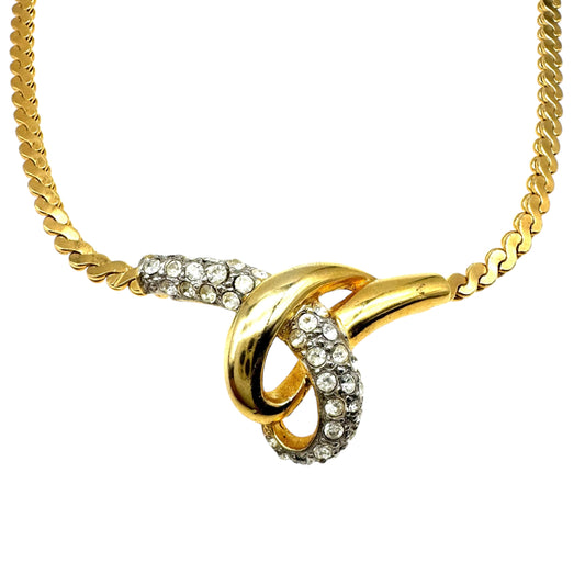 Attwood and Sawyer 22ct Gold Plated Swarovski Clear Crystal Necklace Unsigned