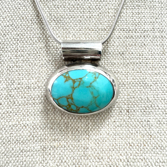 Mexico 925 Silver Synthetic Turquoise Wide Bail Pendant Necklace