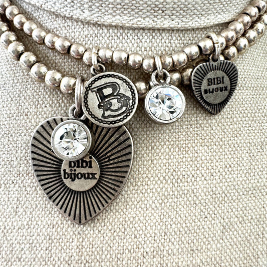 Bibi Bijoux Multi Charm and Swarovski Crystal Two Strand Silver Plated Ball/Bead Necklace