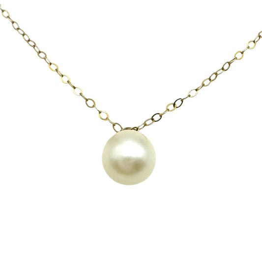 Vintage 9ct Gold Solitaire 7mm Pearl Pendant Trace Chain Necklace