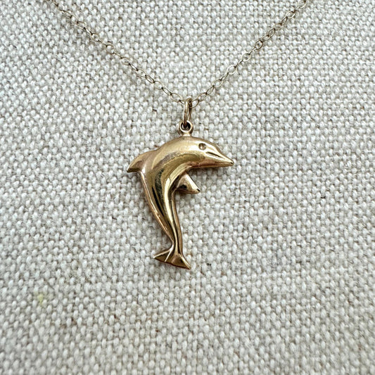 9ct (Stamped 375) Gold Leaping Dolphin on Fine 9ct Gold Chain (Vintage)