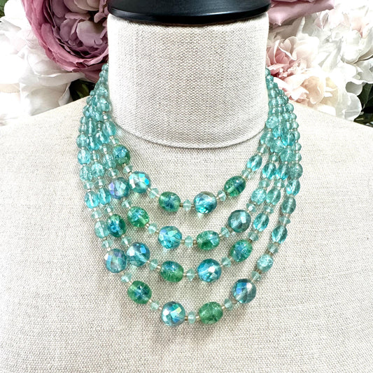 W Germany Signed Four Strand Crackled Art Glass and AB Necklace
