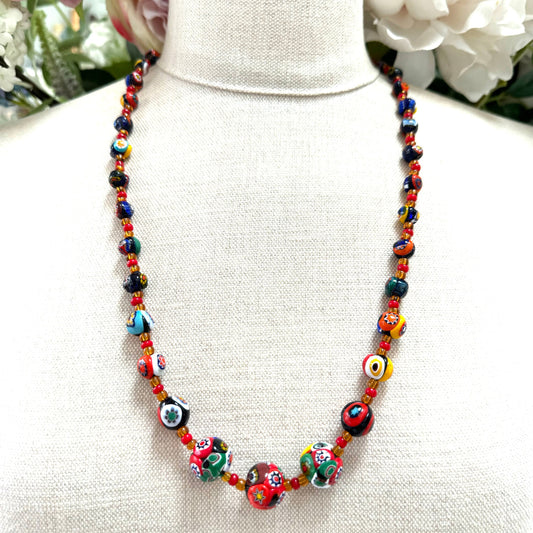 Graduated Venetian Millefiori Bead Wire Strung Necklace