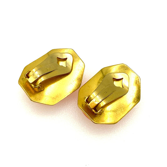 Givenchy Gold Plated Open Work Modernist Clip On Earrings