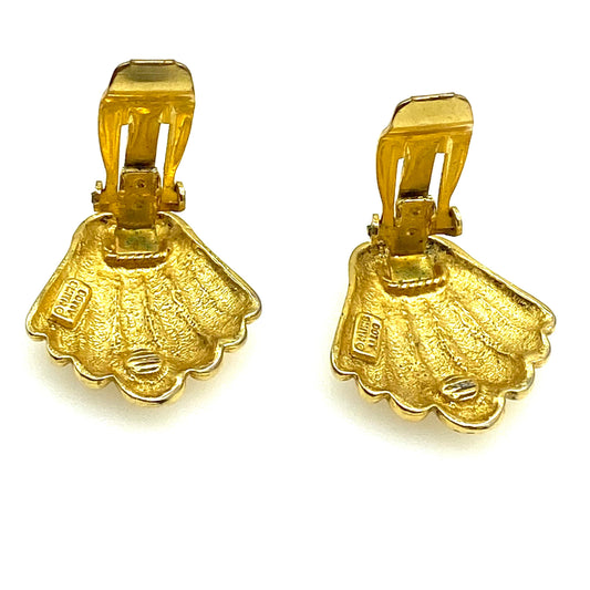 David Grau Round Enamel Gold Plated Clip On Earrings