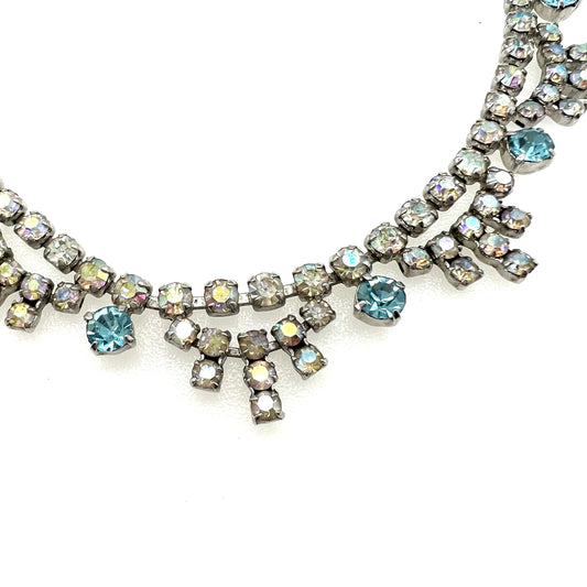 Aurora Borealis Clear Rhinestone Necklace with Sky Blue Rhinestone Accents