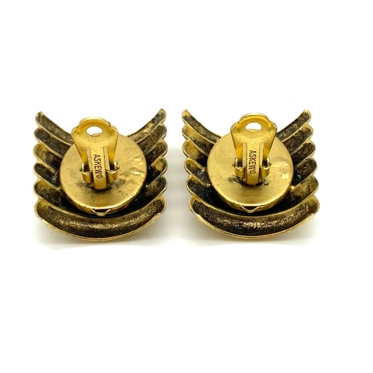 Attwood and Sawyer 22ct Gold Plated and Enamel Modernist Clip On Earrings