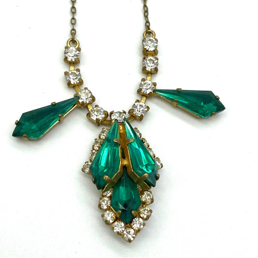Art Deco Clear and Tourmaline Coloured Faceted Glass Necklace