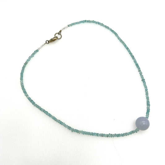 925 Blue Apatite Hand Knotted Three Strand Necklace with a Chunky Gold Overlay 925 Silver Magnetic Clasp