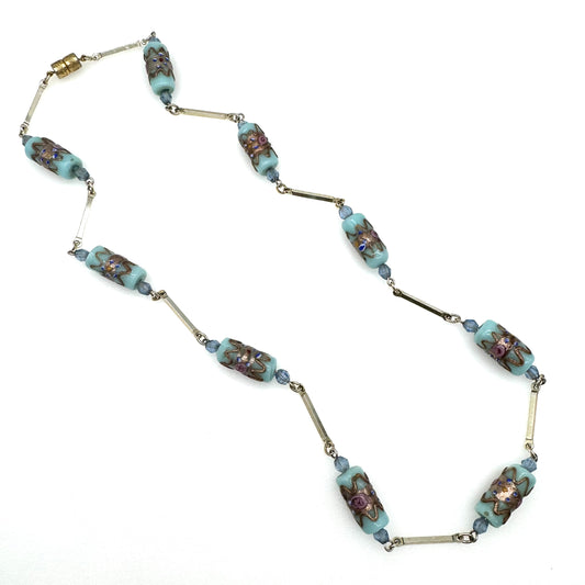 Victorian or Czech Faux Turquoise Gold Tone Brooch (377) with Trombone Clasp